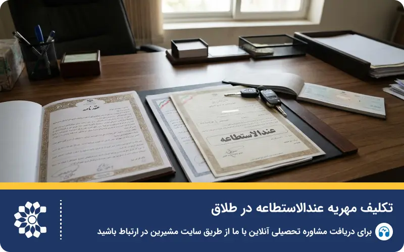 در زمان طلاق، وضعیت مهریه عندالاستطاعه به نوع طلاق بستگی دارد:طلاق توافقی: زوجین باید در مورد نحوه پرداخت مهریه توافق کنند. معمولاً در این حالت، زن بخشی از مهریه را در قبال طلاق میبخشد (بذل مهریه) یا توافق میکنند که مرد مبلغی را به صورت اقساط یا نقد بپردازد.طلاق از طرف مرد: اگر مرد بخواهد زن را طلاق دهد، باید تمامی حقوق مالی او از جمله مهریه را بپردازد. در اینجا حتی اگر مهریه عندالاستطاعه باشد، چون مرد خواهان طلاق است، دادگاه معمولاً سختگیری بیشتری میکند و مرد باید تکلیف پرداخت را مشخص کند (یا نقد یا اقساط معقول).طلاق از طرف زن: اگر زن به دلیل عسر و حرج (سختی غیرقابل تحمل) درخواست طلاق دهد، وضعیت مهریه پیچیده میشود. معمولاً زن برای راضی کردن مرد به طلاق، مجبور میشود تمام یا بخشی از مهریه عندالاستطاعه خود را ببخشد.